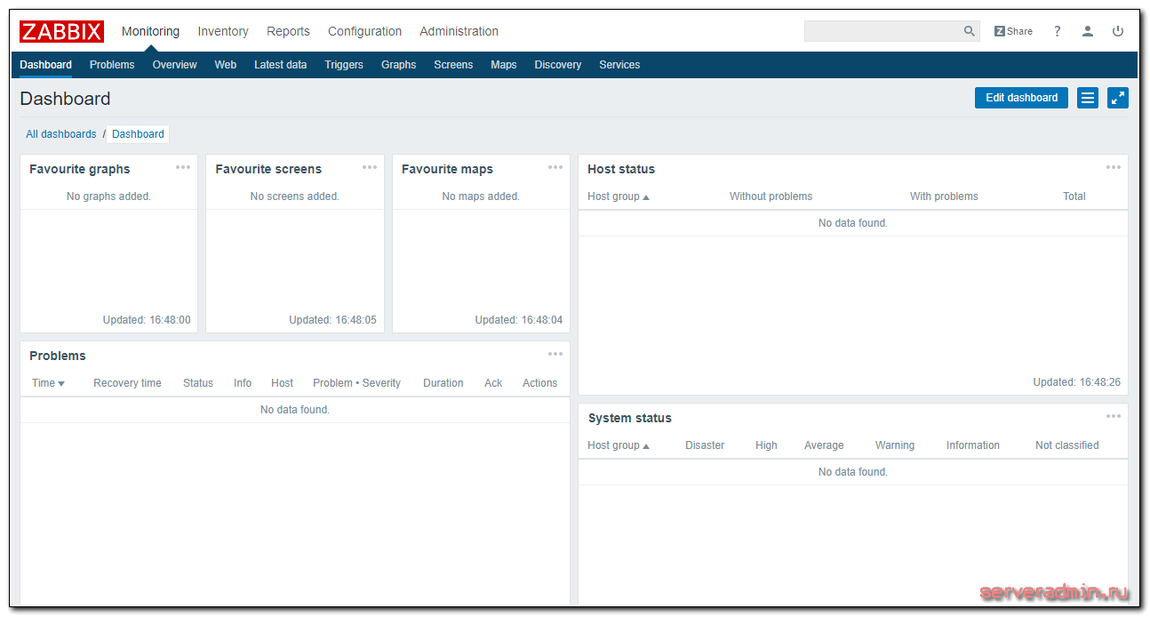 Сбор данных мы настроим чуть позже, установив zabbix агент на этот же сервер. А пока сделаем некоторые минимальные и необходимые настройки на сервере.
