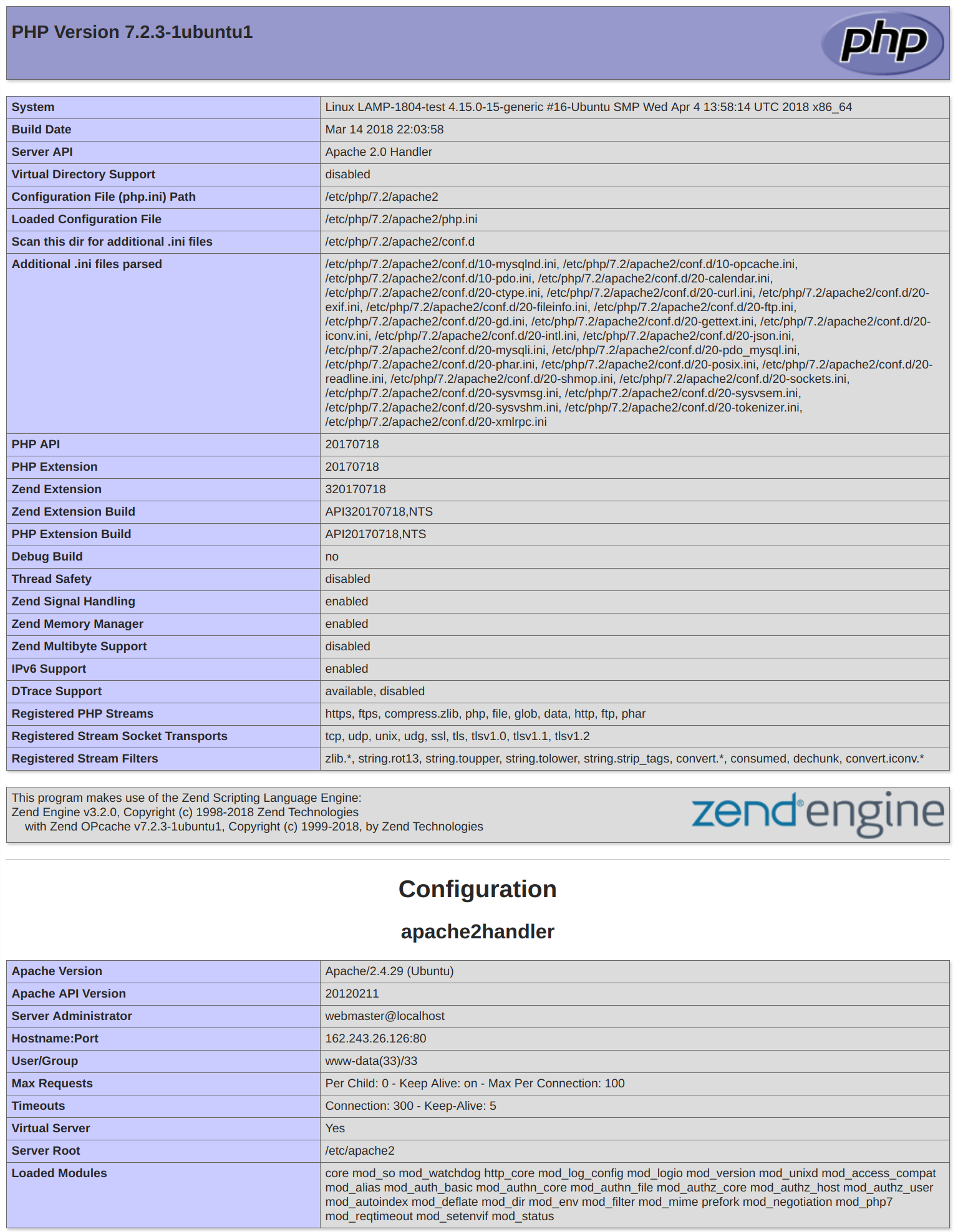 Данная страница содержит информацию о вашем сервере с точки зрения PHP. Она полезна для отладки и чтобы удостовериться в корректности применения настроек.