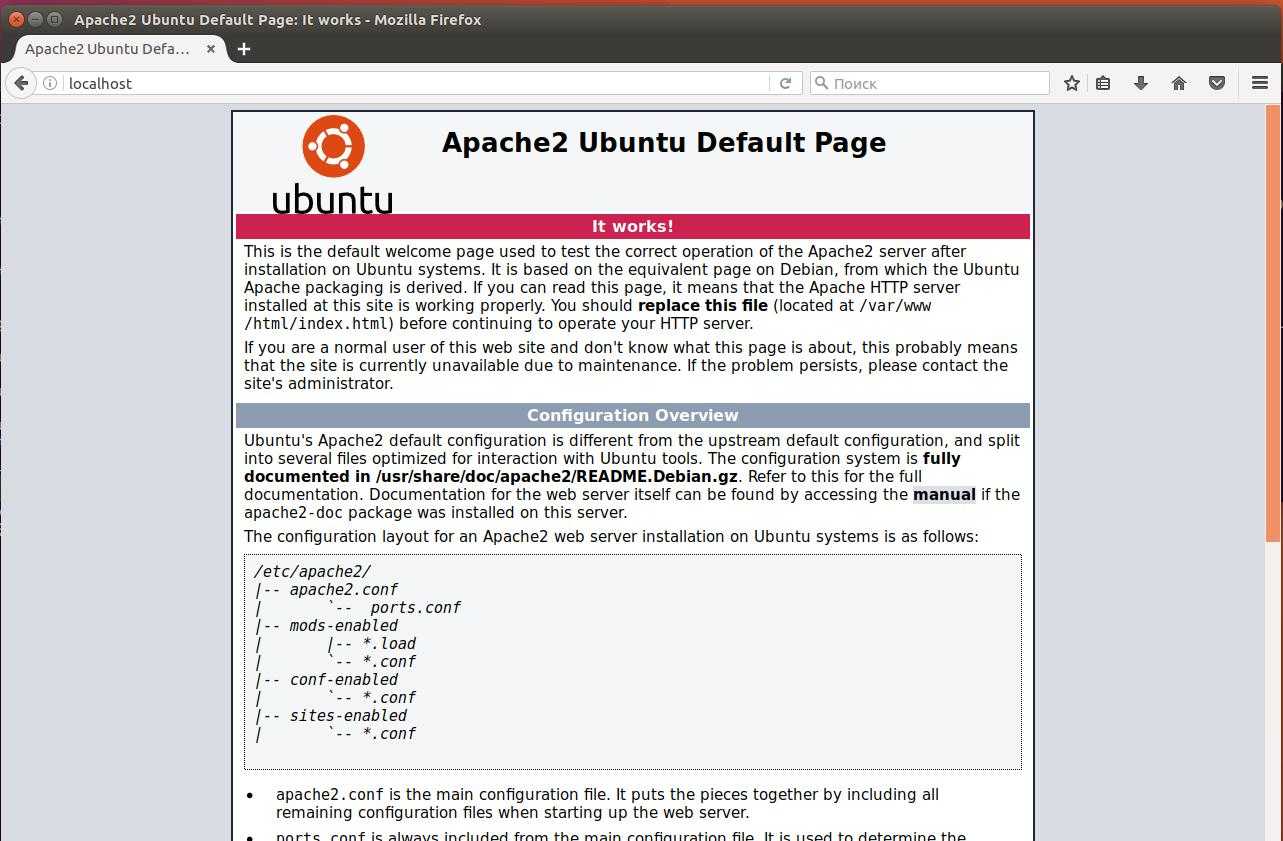 Вторая команда добавляет программу в автозагрузку. Затем откройте ip адрес 127.0.0.1 в браузере. Если все работает, то вы должны увидеть тестовую страничку: