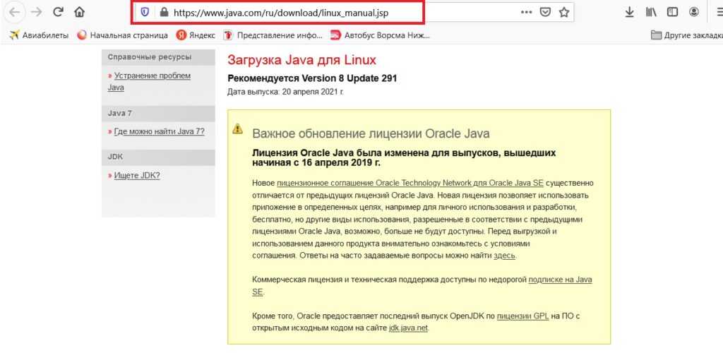 Примечание: Чтобы установить эту версию, нужно принять лицензию Oracle Binary Code License Agreement for Java SE.