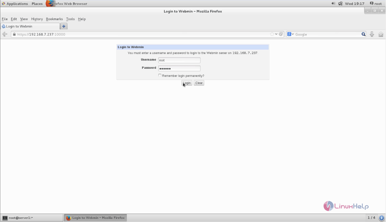 Шаг 3 Введите имя пользователя и пароль, которые мы назначили в процессе настройки, и нажмите «Войти», чтобы получить доступ к Webmin: