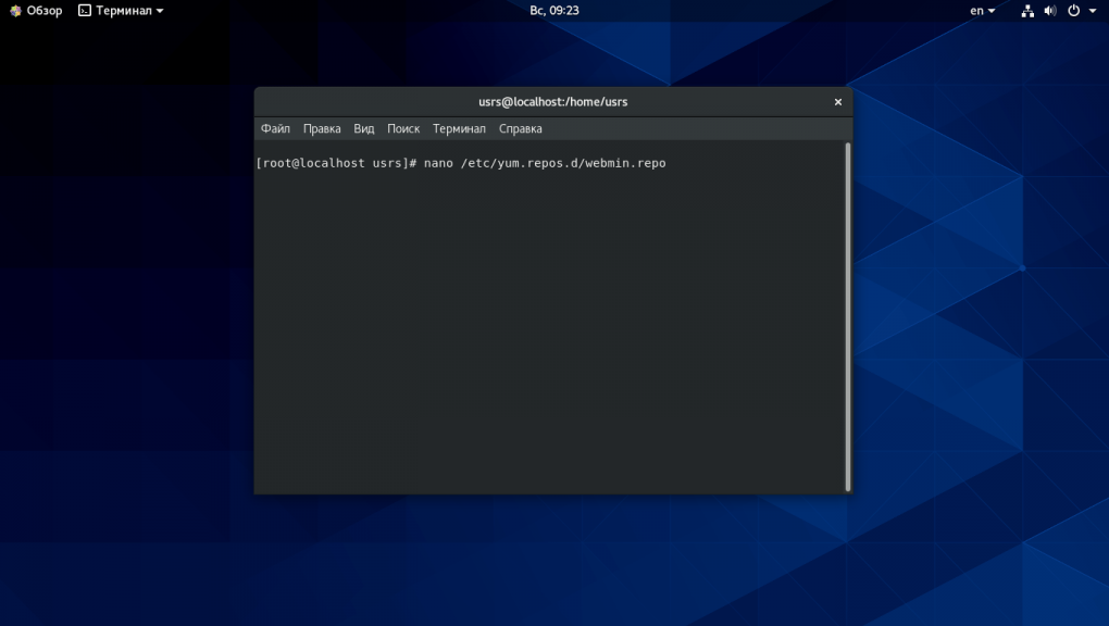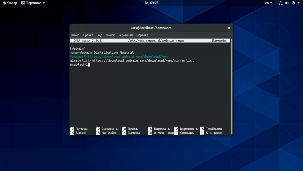 Для RHEL/CentOS также есть репозиторий проекта Webmin, и его тоже требуется добавить в список репозиториев yum.Для этого создадим файл следующего содержания.