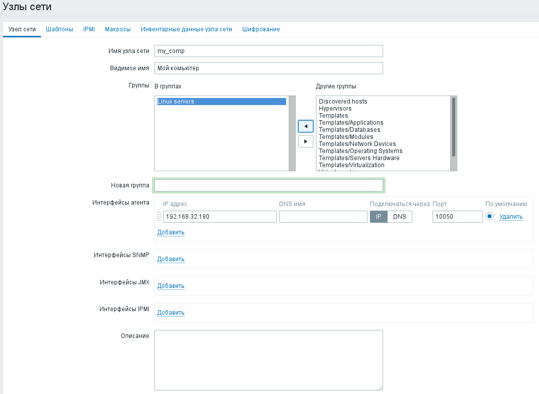 Сбор данных мы настроим чуть позже, установив zabbix агент на этот же сервер. А пока сделаем некоторые минимальные и необходимые настройки на сервере.