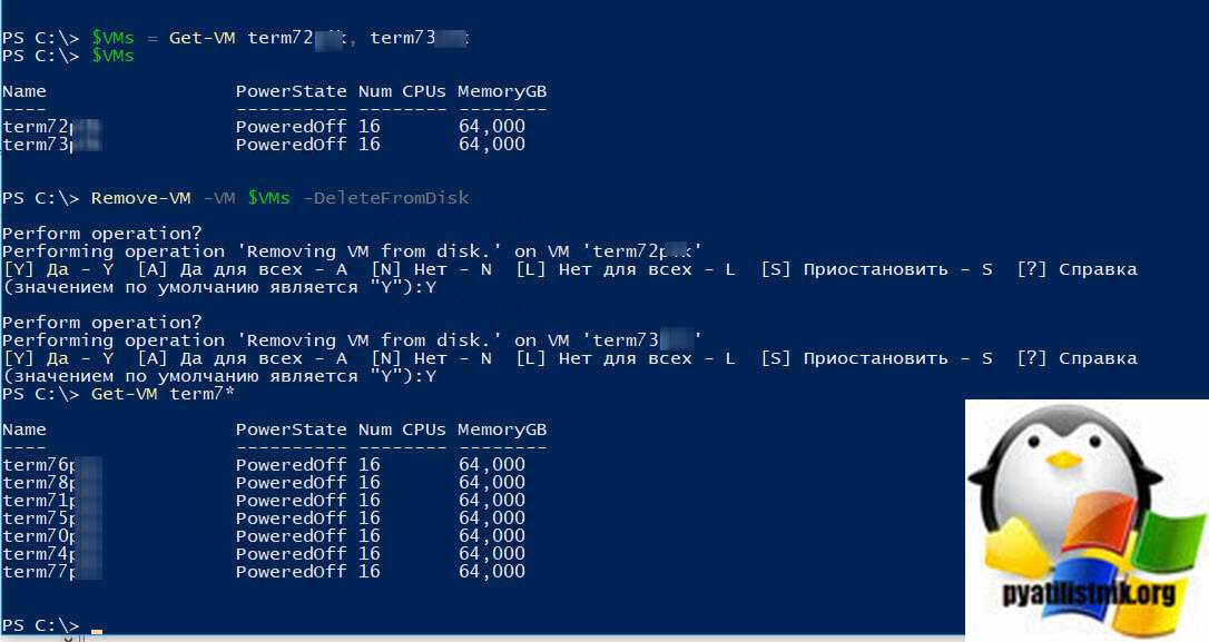 # Производим удаление виртуальных машин