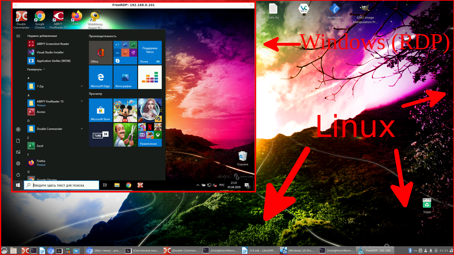 - rdesktop — клиент с открытым исходным кодом для служб Windows удалённого рабочего стола