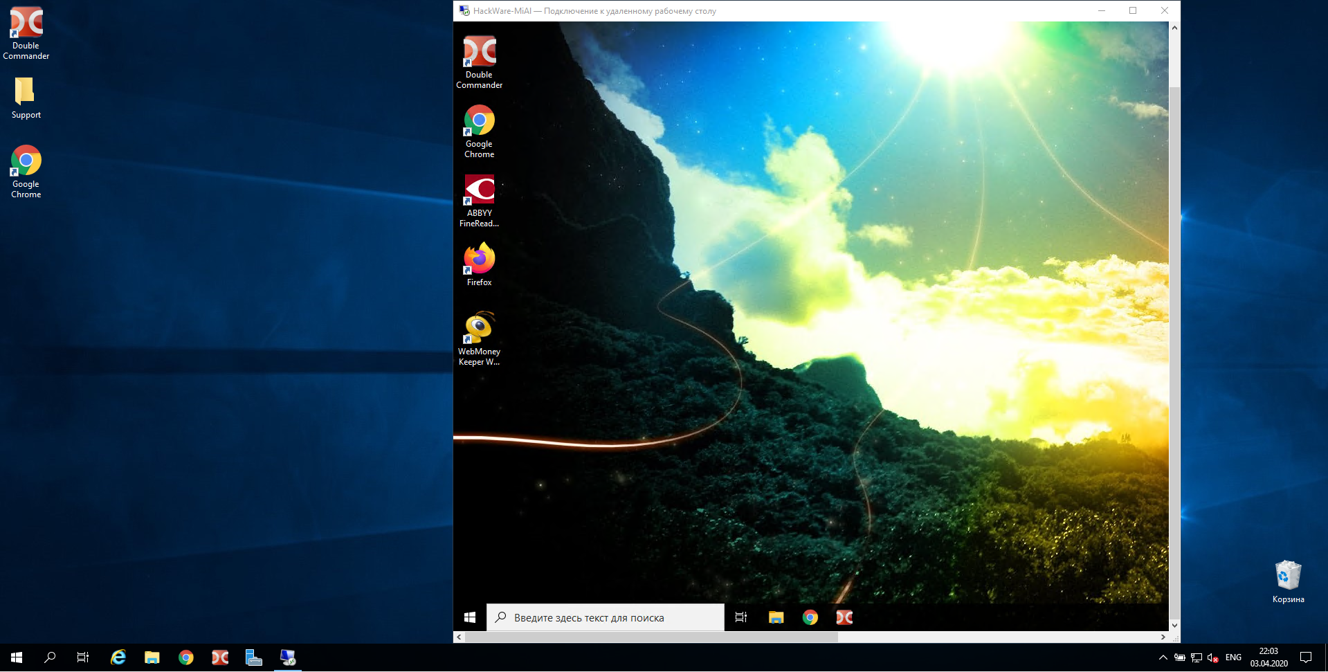 Теперь мы видим экран удалённого компьютера: работа с ним ничем не отличается, можно запускать программы, выполнять настройки и любые другие действия: