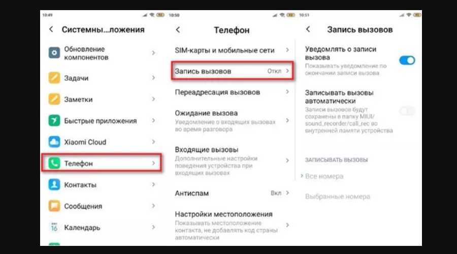 Настройки записи разговоров на аппаратах системы Xiaomi
