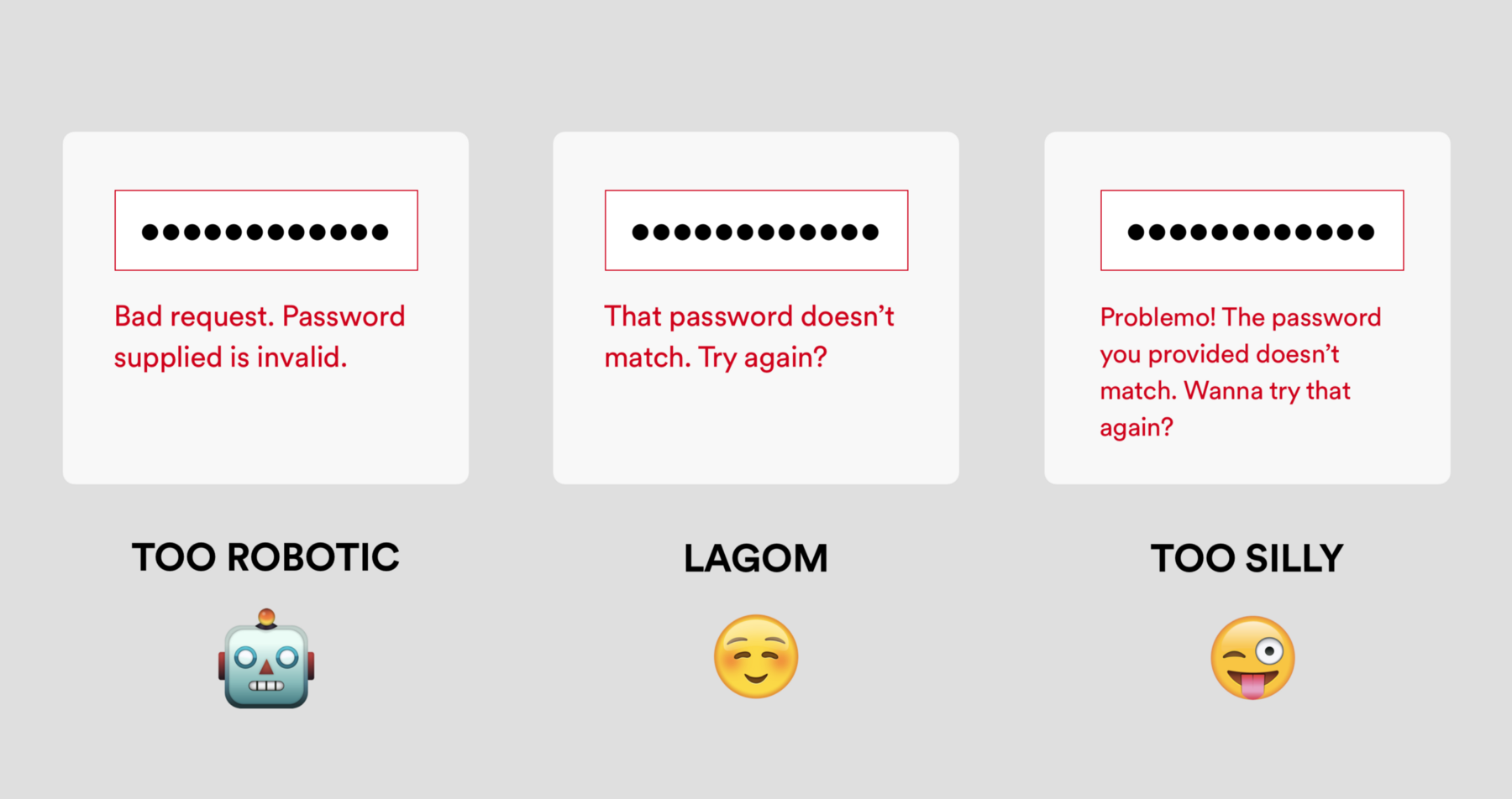 Как UX-копирайтеры, мы хотим передать правильную информацию в нужное время. Но дело не только в том, что мы говорим, но и в том, как мы это говорим. Когда дело доходит до тона, мы пытаемся найти правильный баланс.