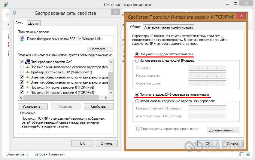 В открывшемся окне свойств установите получение IP-адреса и адреса DNS-сервера в автоматическом режиме. Если автоматика уже выставлена, попробуйте вручную установить адрес DNS 8.8.8.8 (Google) или 77.88.8.88 (Яндекс). Также можно установить адрес любого другого альтернативного DNS-сервера, найти который не составит труда в интернете.