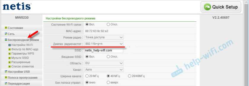 Откройте страницу с настройками в браузере по адресу http://netis.cc. Затем перейдите в раздел «Беспроводной режим».