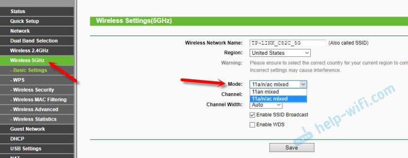 Если у вас двухдиапазонный маршрутизатор TP-Link, то для смены режима работы диапазона 5 GHz перейдите в соответствующий раздел.