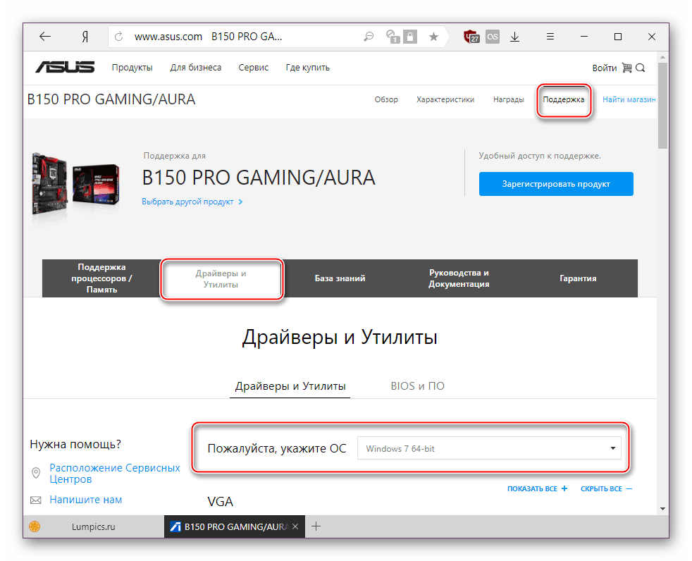 Если ручные манипуляции не помогли, можете попробовать установить драйвер на SATA, скачав его с официального сайта производителя материнской платы. Рассмотрим этот процесс на примере ASUS: