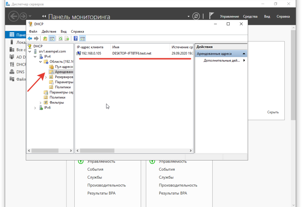 Давайте теперь завершим настройку DHCP, нажимаем на флажочек или Средства — DHCP