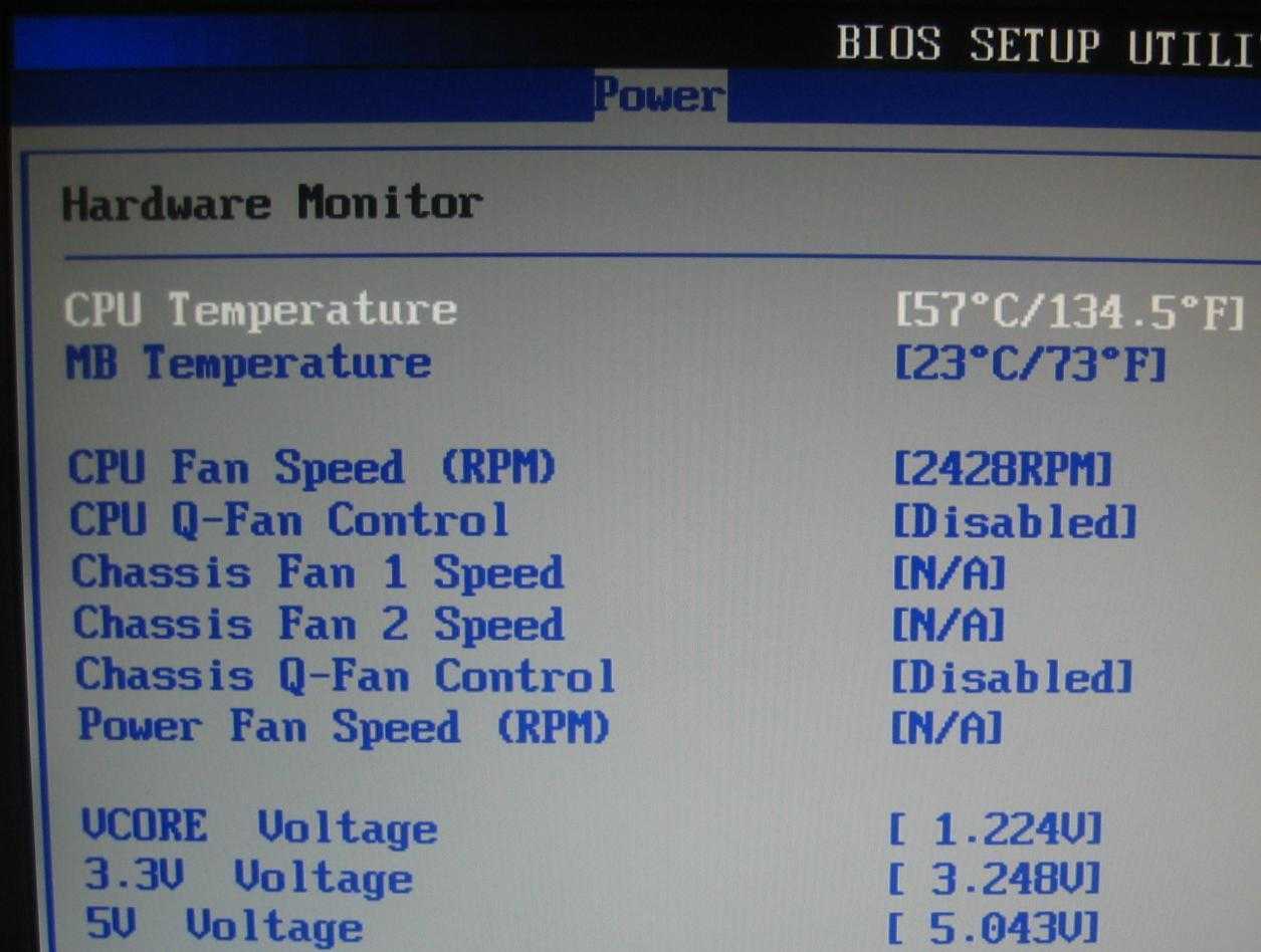Неисправное охлаждение процессоров или видеокарт может привести к тому что эти устройства нагреваются до критических температур, после чего компьютер либо зависает, либо полностью отключается. Удивительно, но такую ситуацию не исправит полноценная чистка, о которой мы только что говорили. Для того, чтобы картина стала ясной, рекомендую зайти в BIOS, в раздел «мониторинга». На моём компьютере этот режим реализован следующим образом.