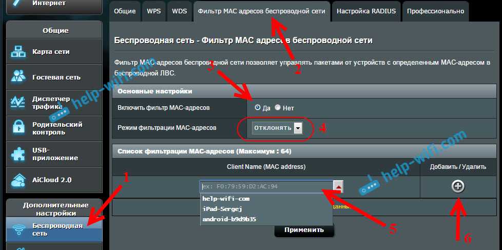 Что бы убрать блокировку, нажмите напротив устройства на кнопку Удалить (-), и нажмите Применить. У Asus эта функция реализована очень просто и понятно. Думаю, вы со мной согласитесь.