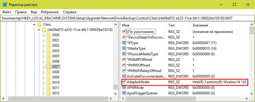 «####» — это подпапка реестра вида 0000, 0001, 0002 и т. д. В таких подпапках хранятся параметры сетевых интерфейсов — каждого в своей. Чтобы узнать, в какую из подпапок производить запись, придется открыть их в реестре и в списке значений найти упоминание имени нужного сетевого адаптера. Такого же, как в диспетчере устройств.