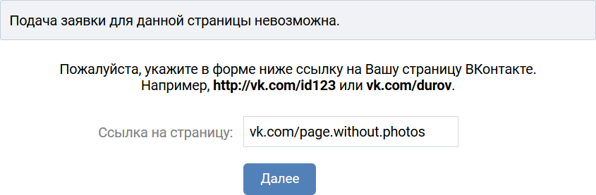 Но если на странице нет фото на аватарке или если ты уже подавал заявку и служба поддержки определила, что подходящие фото на странице отсутствуют, то ВК будет сообщать, что доступ восстановить невозможно (или «Подача заявки для данной страницы невозможна»).